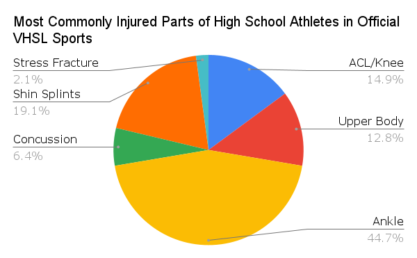 According to OrthoInfo.org, sprains and ligament tears in the ankles are among the most common injuries in high school athletes participating in high contact sports. Furthermore, in a survery which asked more than 45 high school athletes of official Virginia High School League (VHSL) sports what the most common injury in their sport was, almost half responded with ankle sprains: